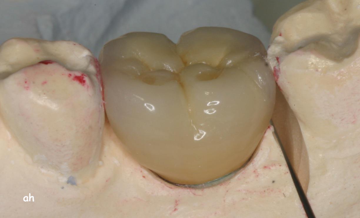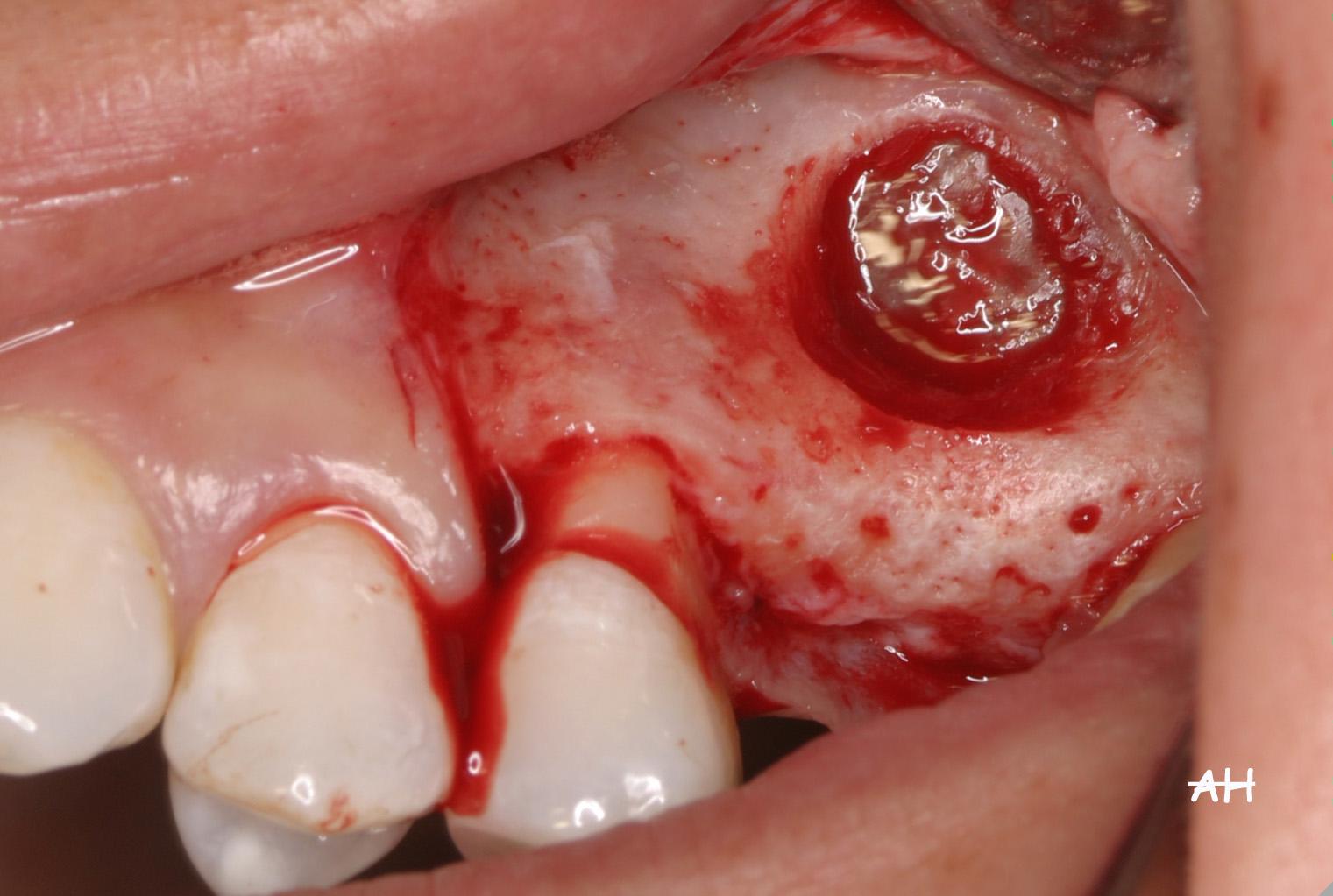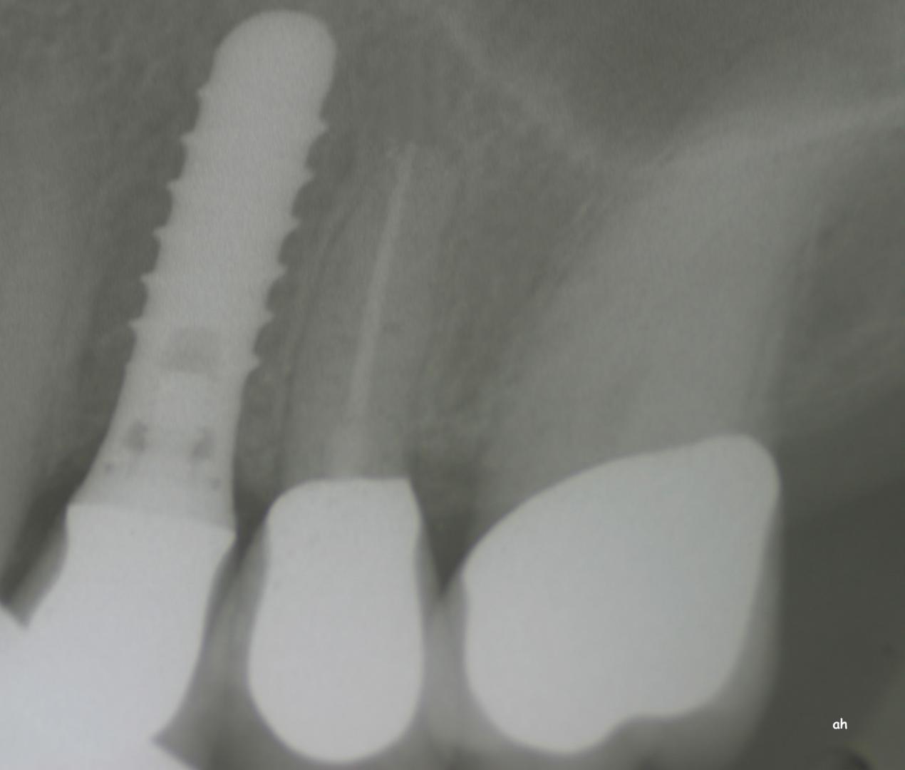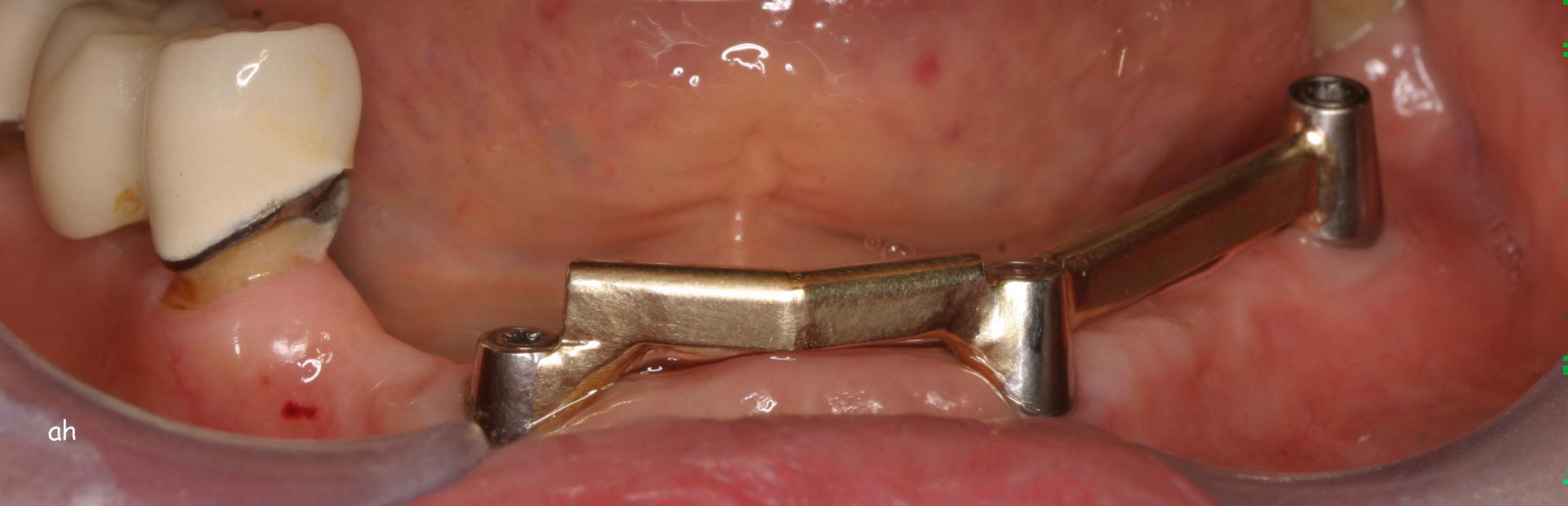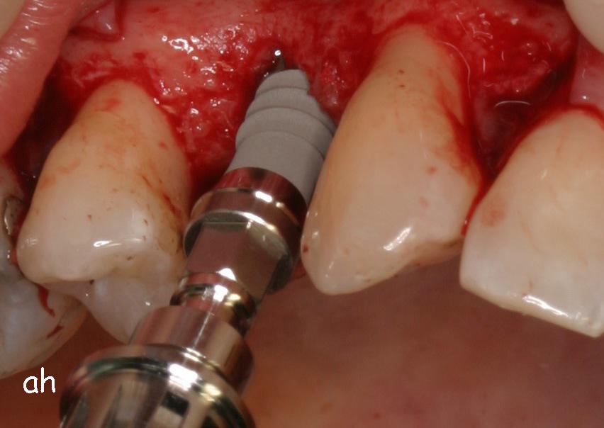 L'intégration de l'implant dans l'os se fait en 6 à 12 semaines, pendant ce laps de temps il est préférable de ne pas trop charger l'implant. Plus tard une empreinte est effectuée, le laboratoire confectionne une couronne en céramique que l'on fixera sur l'implant.